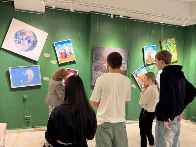 На выставке представлено 235 работ 97 авторов из 36 регионов России. Ребята узнали о принципах построения экспозиции в целом и о композиционном, цветовом построение отдельных работ.
