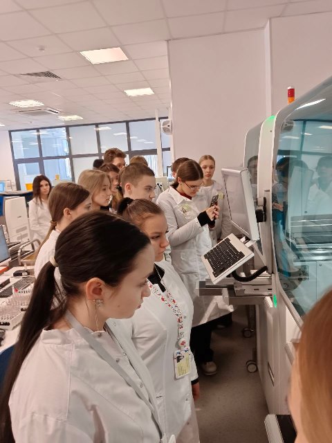 В клинической лаборатории студенты познакомились с тонкостями лабораторных исследований, узнали, как проводятся анализы и какую роль они играют в постановке диагноза.