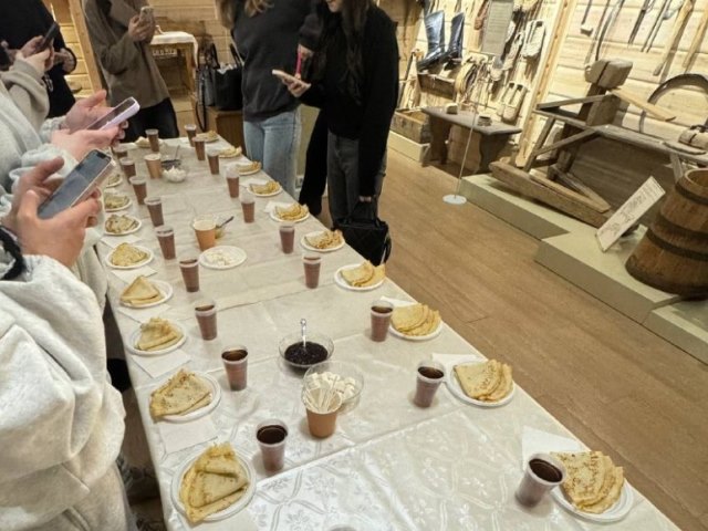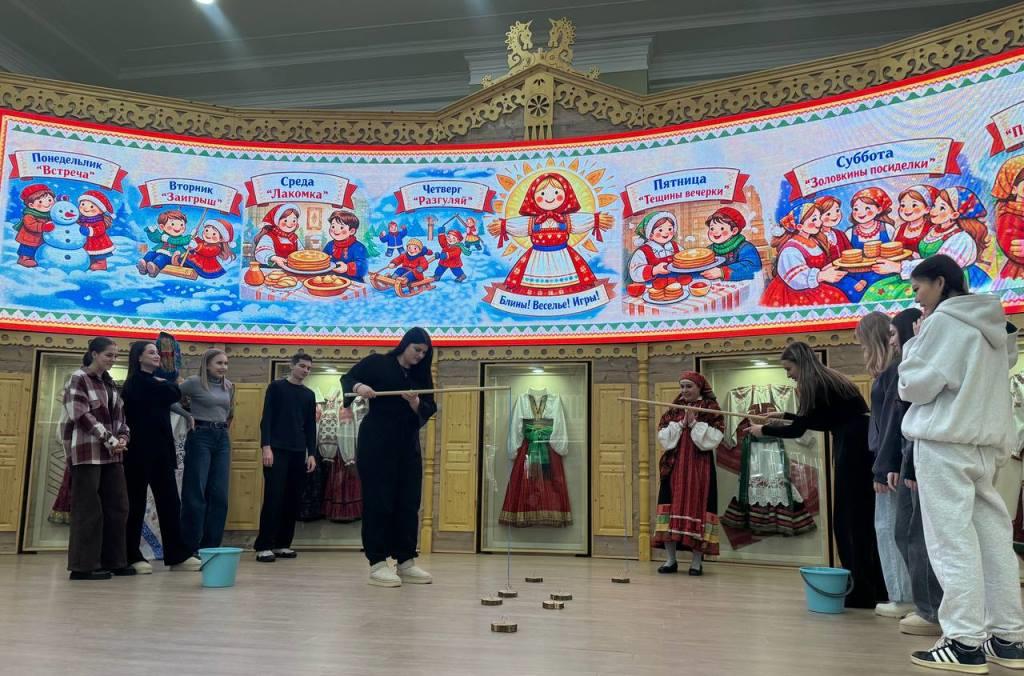 Студентов встретил гостеприимный персонал музея, подробно рассказавший о быте наших предков, старинных ремеслах и искусстве народного творчества. Участники мероприятия смогли увидеть уникальные экспонаты, отражающие быт и нравы прошлых веков. Во время визита ребята узнали много интересного о народных приметах и поверьях, связанных с праздником Масленицы. Например, почему именно блины стали символом прощания с зимой и ожидания весны, зачем устраивали шумные гуляния и как народ выражал благодарность природе за плодородие земли.