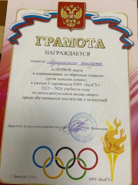 Студенты медицинского колледжа НИУ «БелГУ» завоевали первые места в интеллектуальной спартакиаде по шашкам поддавкам, популярной игре с обратной целью — отдать все свои шашки сопернику. Успех разделили и мальчики, и девочки, показав отличную тактику и командный дух.