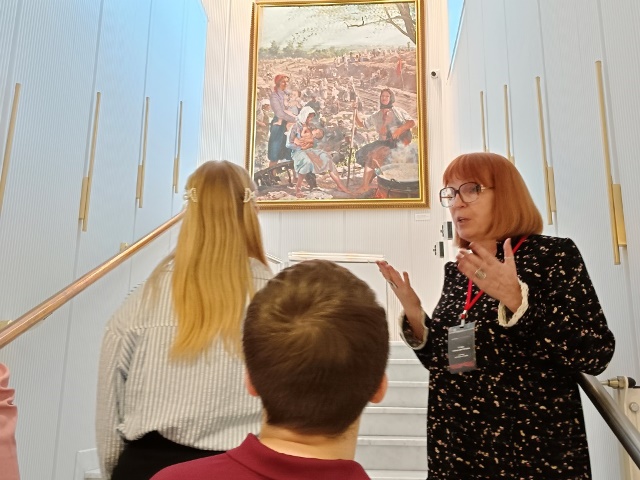 Экскурсию провела старший научный сотрудник Галина Викторовна Стовба. Она познакомила будущих медицинских сестёр с картинами, созданными по документальным фотографиям строительства железной дороги Старый Оскол — Ржава, встречи освободителей Белгорода 5 августа 1943 года.