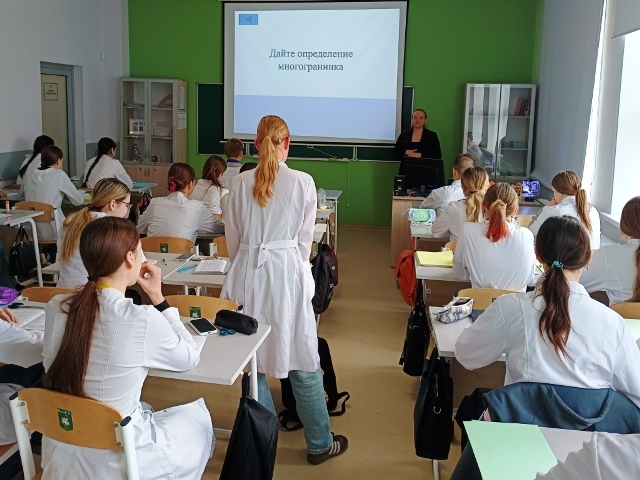Преподаватель медицинского колледжа НИУ «БелГУ» Охременко Анастасия Геннадьевна в рамках методической недели ЦМК Общеобразовательных дисциплин провела увлекательное открытое занятие в группе 03052504 на тему «Правильные многогранники».